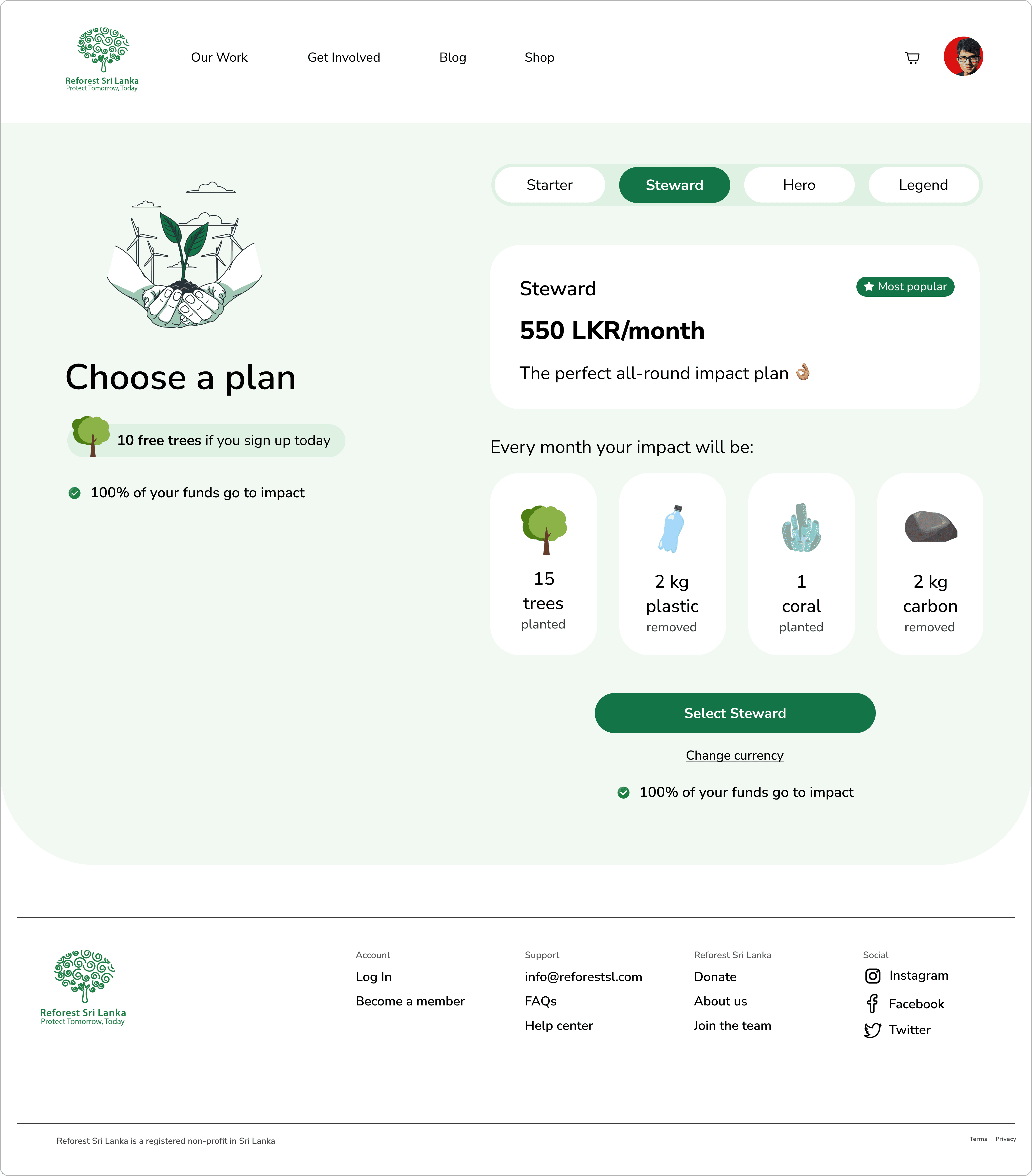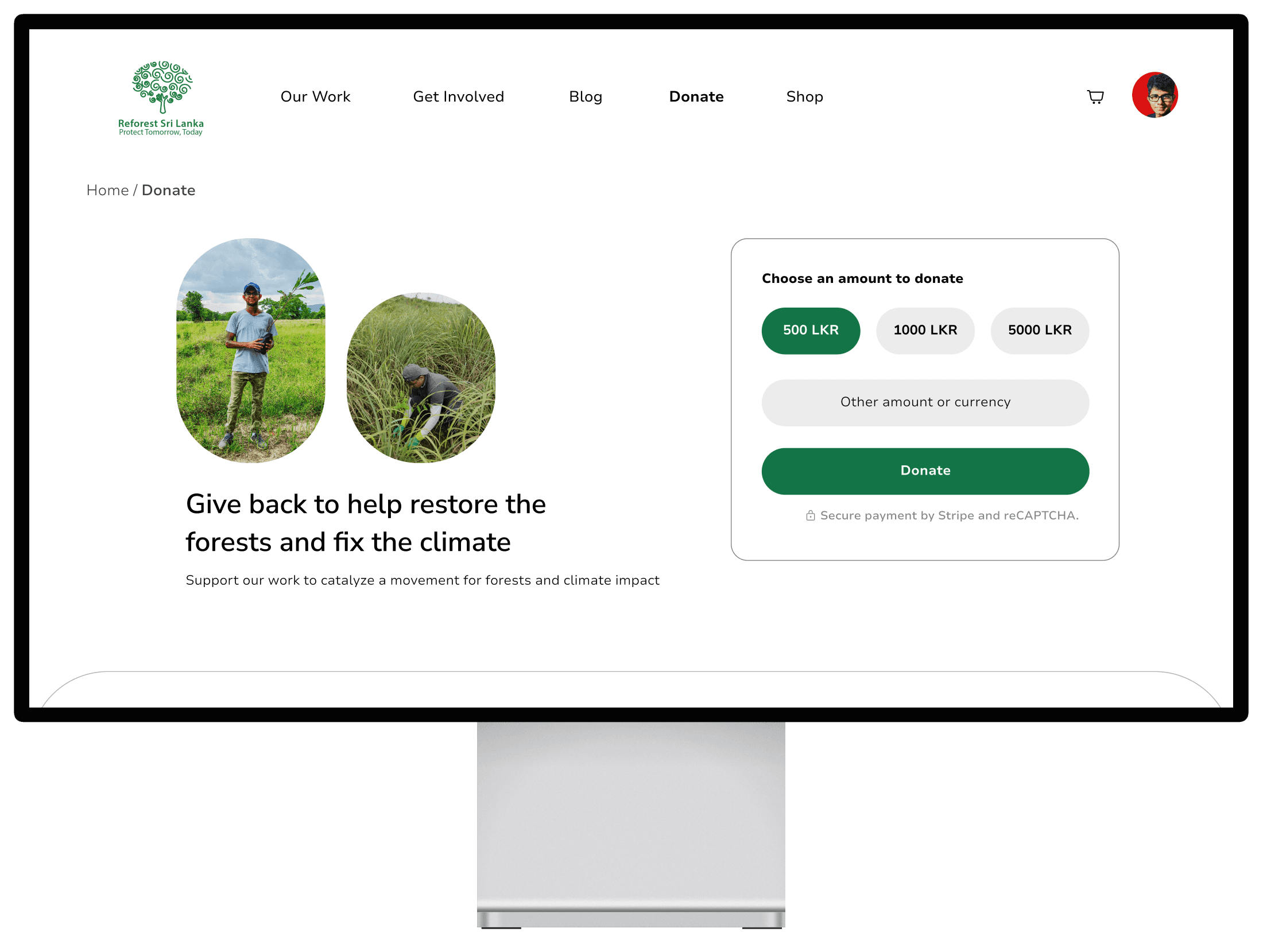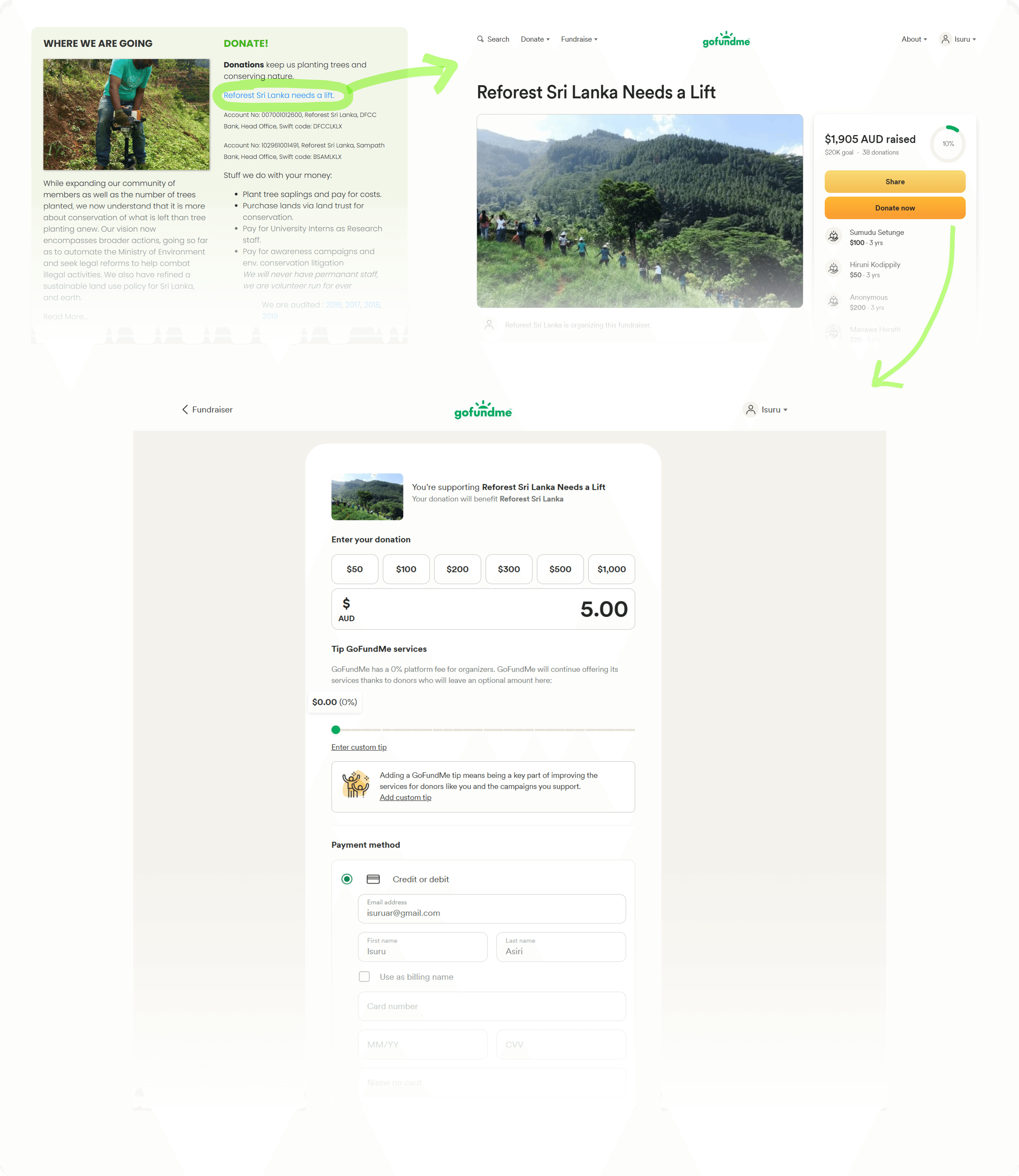 User journey: Making a donation for 'Reforest Sri Lanka'